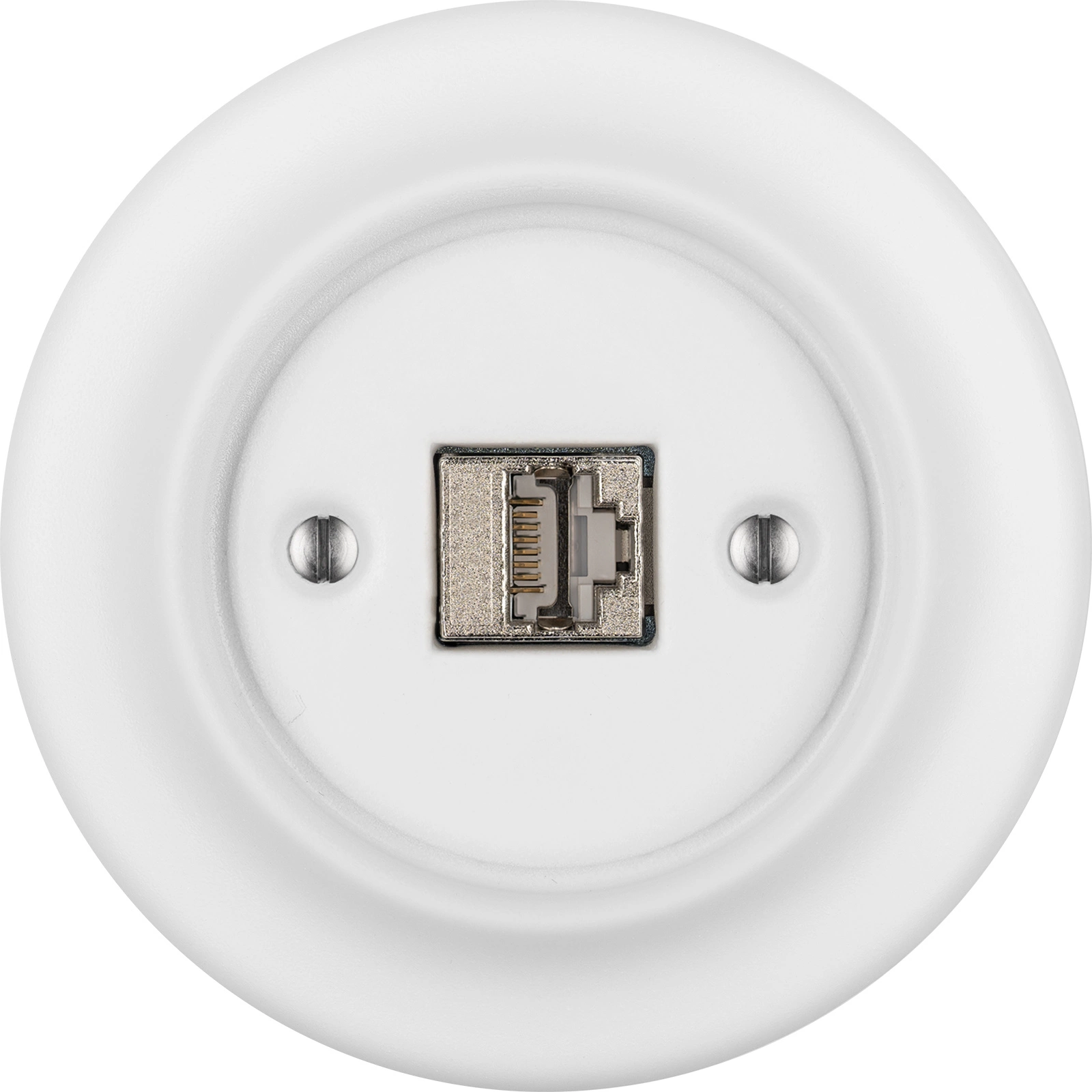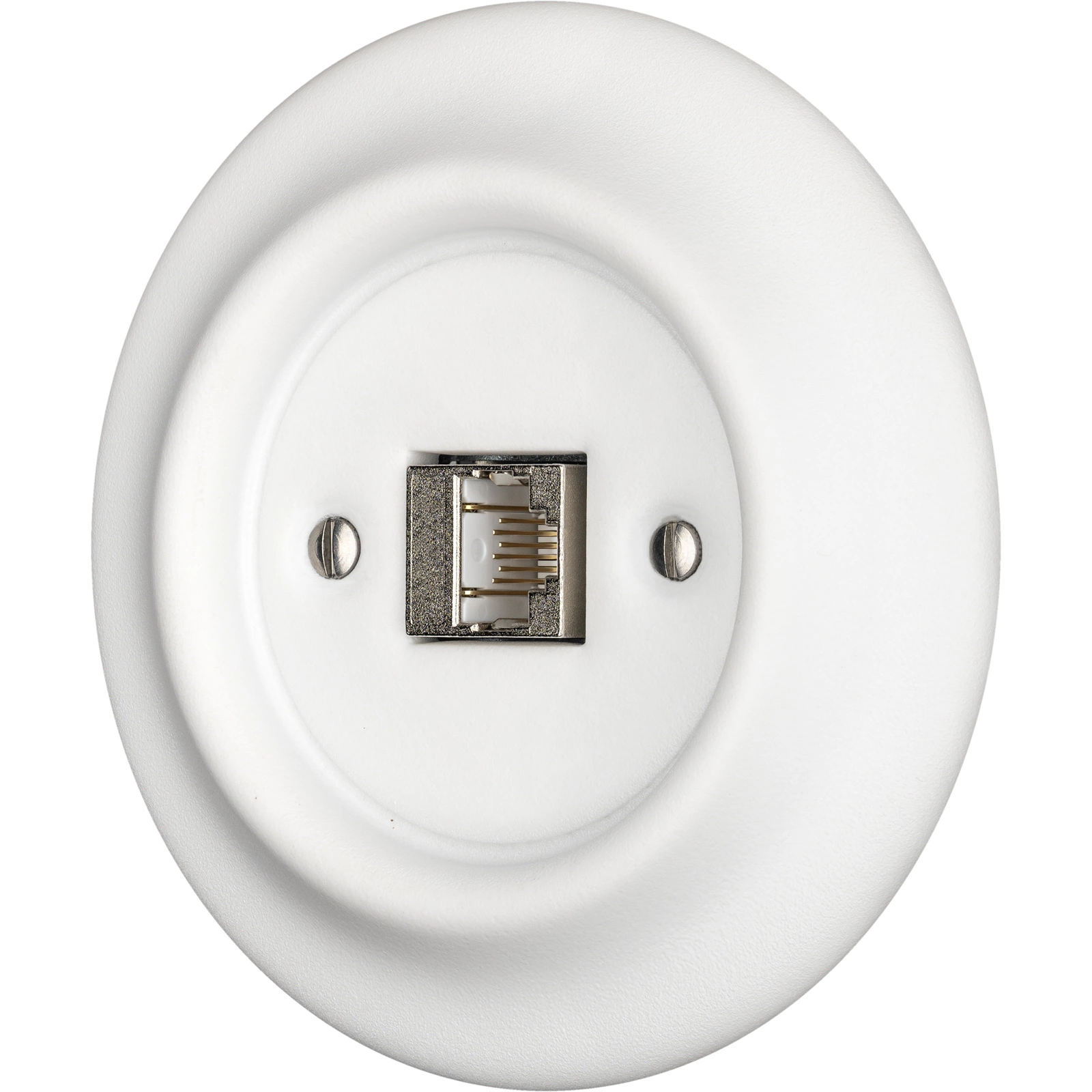Mrežna utičnica RJ45 u retro stilu u mat bijela, izrađena od tradicionalnog porculana. Proizvod je otporan na prašinu, ima stalnu boju i površinu vrlo otpornu na habanje. Emajliran je i ručno izrađen u vrhunskoj kvaliteti. CE certifikat sukladnosti. Ukrasni poklopac. Garancija 50 godina!