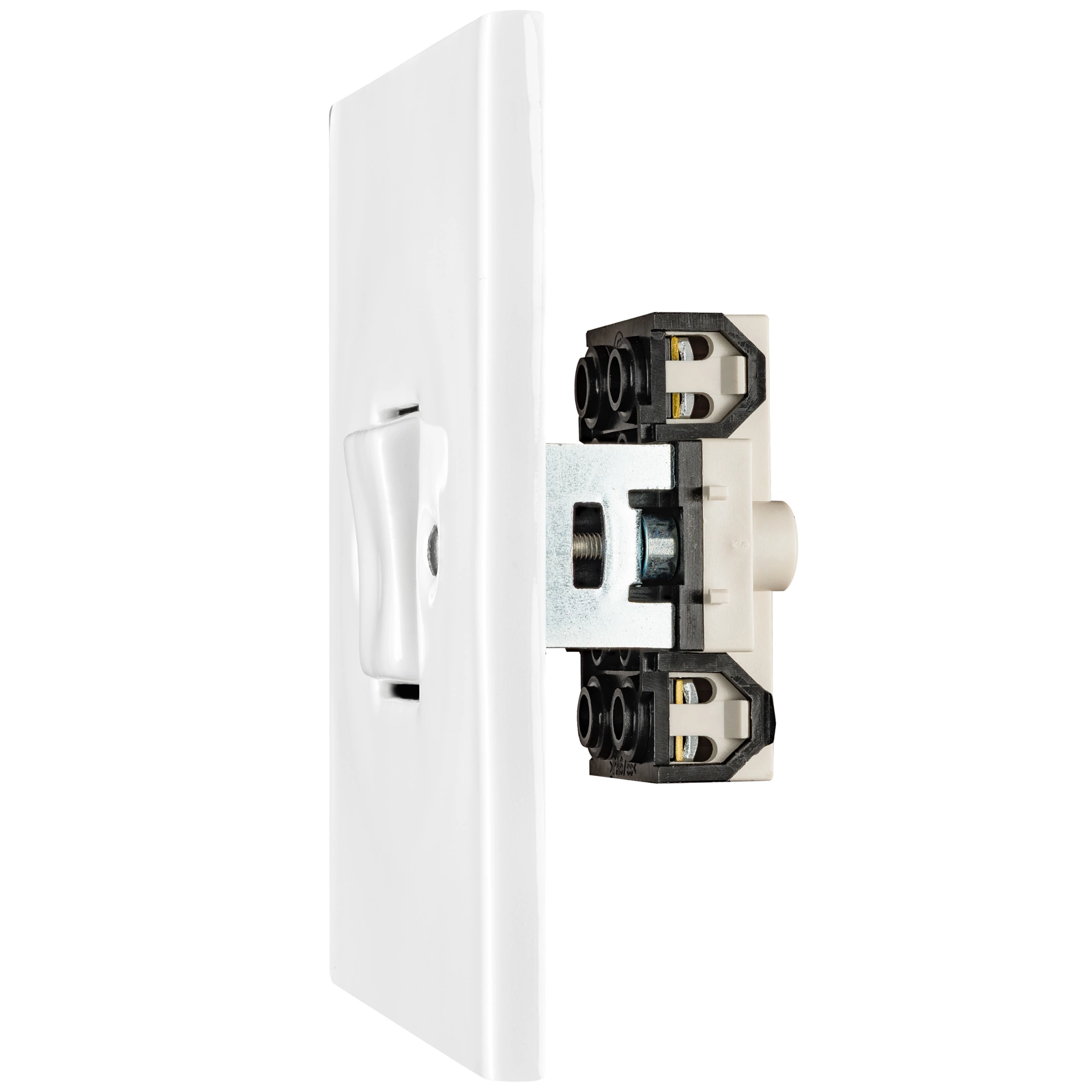 250 V / 10 A, minimalni razmak između središta montažnih kutija je 100 mm (min. 95 mm), dubina kutije 43 mm. Za spajanje više montažnih kutija zajedno može se koristiti praktična spojnica od KATY PATY. Prekidač se može koristiti s timerom koji automatski gasi svjetlo nakon određenog vremena.
