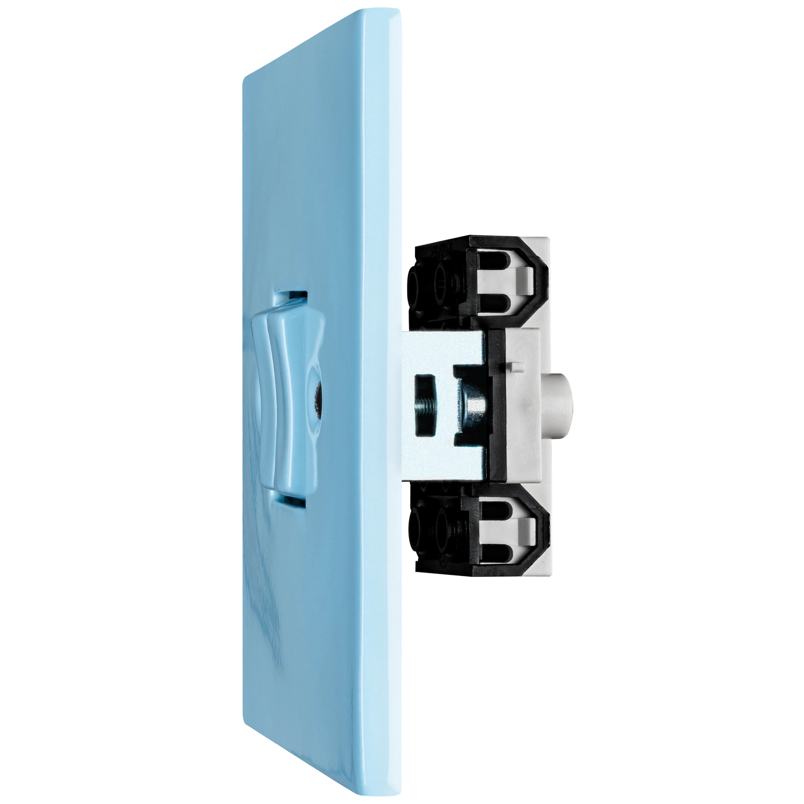 250 V / 10 A, minimalni razmak između središta montažnih kutija je 100 mm (min. 95 mm), dubina kutije 43 mm. Za spajanje više montažnih kutija zajedno može se koristiti praktična spojnica od KATY PATY. Prekidač se može koristiti s timerom koji automatski gasi svjetlo nakon određenog vremena.
